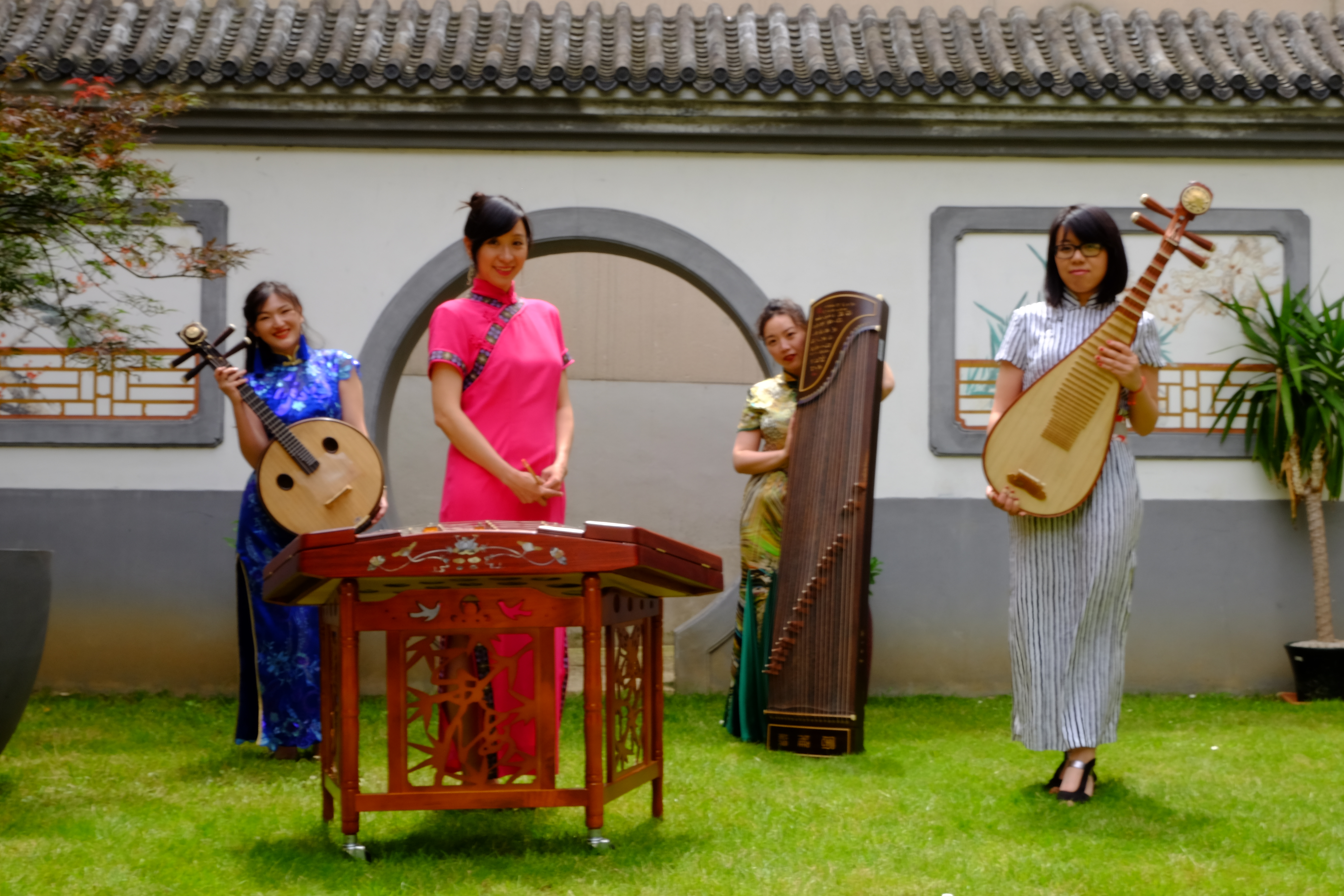【弦外知音】是由五位中国姑娘组成的包括 中国民乐各种弦器:古筝,琵琶,中阮,扬琴 的乐队
