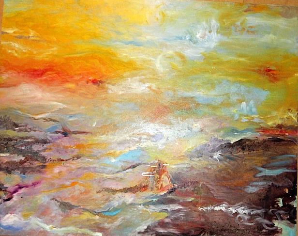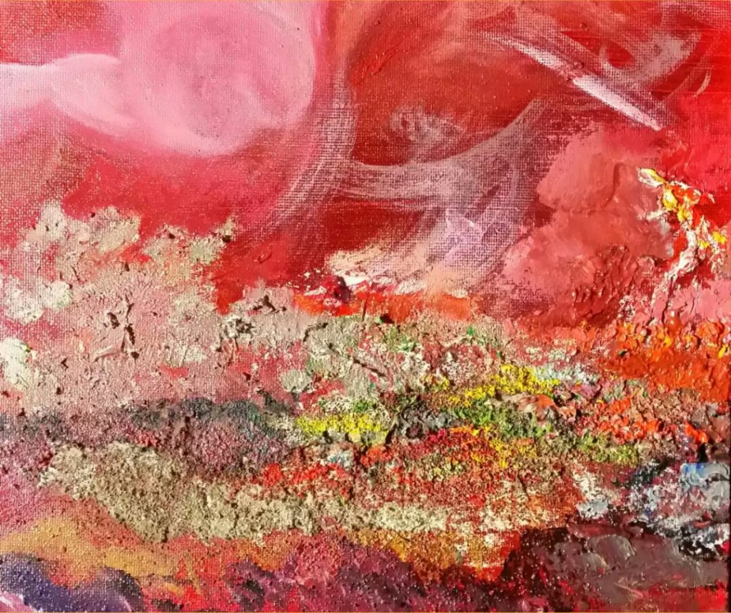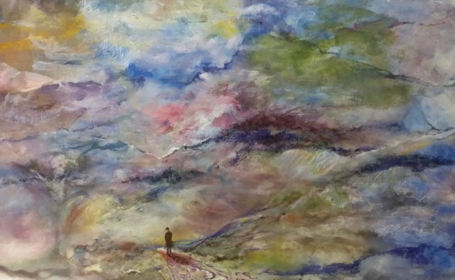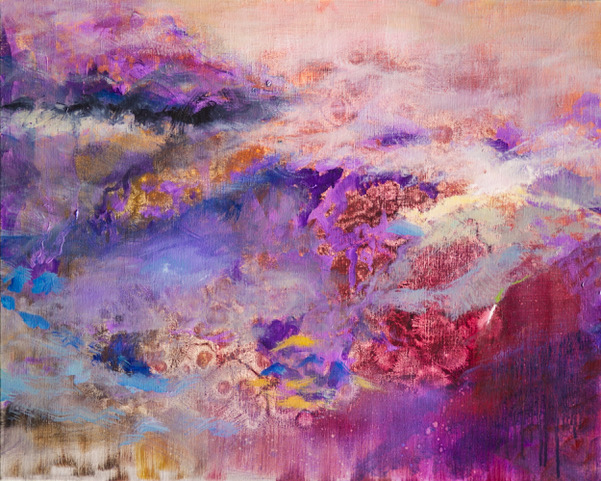 这就是他画作的特点: 即介于具象与抽象之间,解秘生命,自然,星河与人类之间缠结的神锁,画家把他的激情、思考、梦想都倾注在他的画布上。这里没有目标及主题,没有规则与设计,他给所有观众一个高度的个人化理解的空间。他所呈现的是似梦非梦,飘飘渺渺地宇宙之意境,这种意境所传达的是一种视觉感受,你完全可以用自己独特的理解、认知作为标准来欣赏这些画作,尤其是你感到触动心弦时,你会产生与画家的共鸣,由此与画家进行最深层次的情感交流。