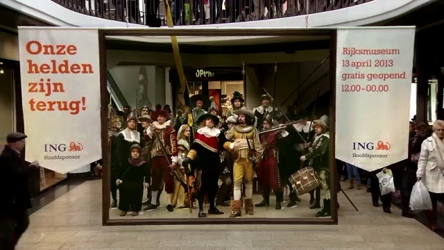 江山如画,一时多少豪杰2013年,经过 10年整修, 荷兰国家 Rijksmuseum 博物馆重新开馆。为此,他们结合荷兰重要银行 ING 搞了个“快闪”,以 博物馆“压馆宝” 伦勃朗 的【夜巡】为主题,活人再现于众 。。。